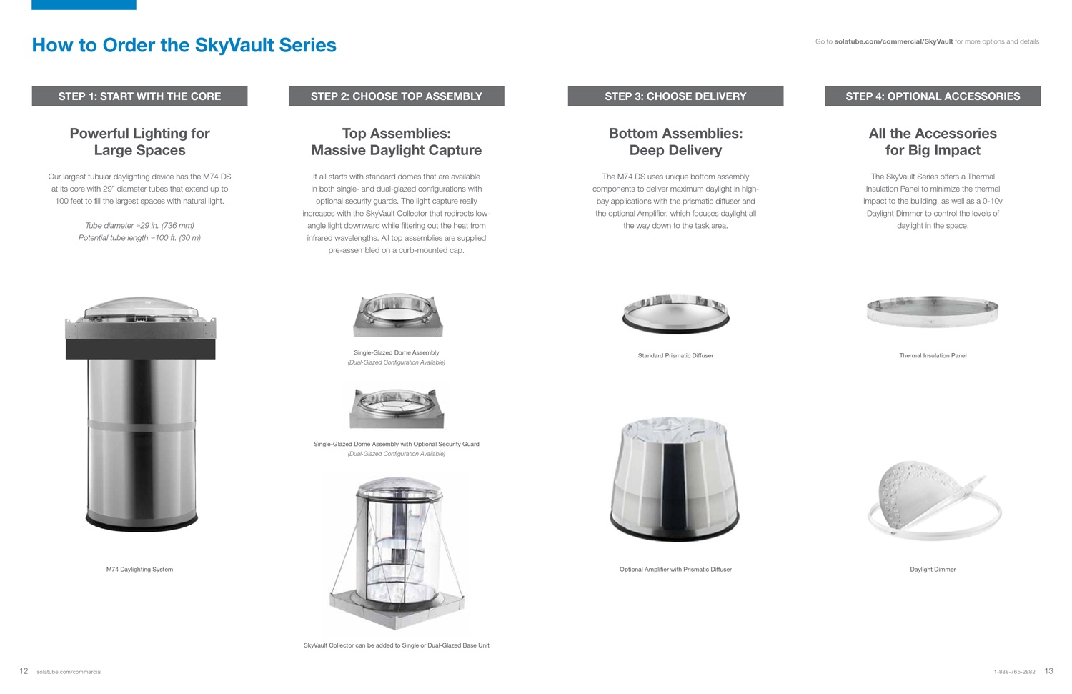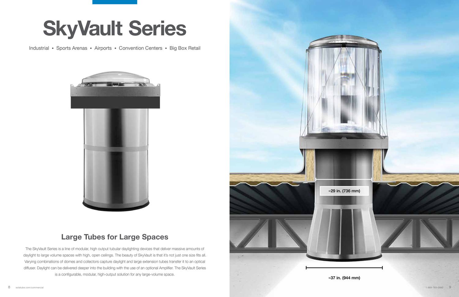 The SkyVault Series is a line of modular, high output tubular daylighting devices that deliver massive amounts of daylight to large volume spaces with high, open ceilings. The beauty of SkyVault is that it’s not just one size fits all. Varying combinations of domes and collectors capture daylight and large extension tubes transfer it to an optical diffuser. Daylight can be delivered deeper into the building with the use of an optional Amplifier. The SkyVault Series is a configurable, modular, high-output solution for any large-volume space.