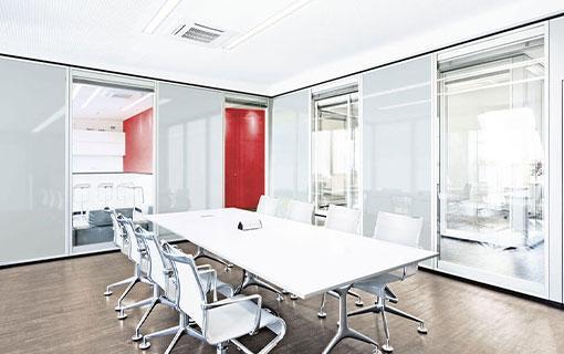 Variflex Glass combines two highly desirable qualities: transparency and sound insulation. The room divisions provided by this movable wall system therefore offer the twin benefits of generous spaciousness and impressive sound attenuation with reduction ratings of up to Rw 52 dB (laboratory value per EN 10140).