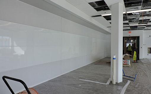 With a streamlined straight down deployment, the Zenith Premium is ideal for spaces with obstructions, such as heavy furniture, and tighter spaces which would otherwise limit the use of a vertically folding retractable wall. The ceiling pocket that stores the Skyfold wall is traditionally visible when looking up from the base of a Classic™ or Zenith® model in its down position. The Zenith Premium, however, features closure panels to hide the pocket from view, thereby maintaining the ceiling’s flushed and unobtrusive appearance. With this added feature, the Zenith Premium in its down position not only divides your space like a fixed wall, but also looks like a permanent fixture.