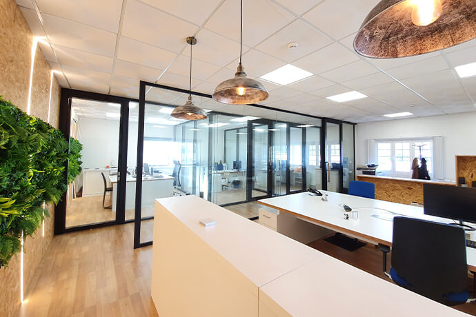 Using a combination of the Glass Slim, WOD Glass Slim, Glass Acoustic, WOD Glass Acoustic, Glass Skin and the PA 100 Opaque. Including some custom finish solutions such as Biophilic and incorporated LEDS.